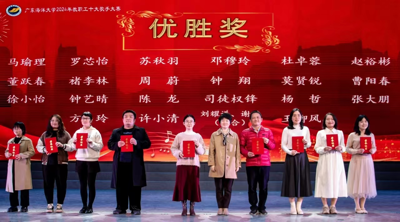 为进一步激发我校广大教职工的爱国爱校热情与工作激情,喜迎学校90周年华诞,12月26日,由学校教育工会主办的“喜迎海大90华诞·2024年教职工十大歌手大赛”总决赛在湖光校区中歌实验剧场举行。自慰视频工会在本次活动中荣获“优秀组织奖”本次比赛得到了广大教职工的热烈响应,教职工们踊跃报名参加比赛。经过激烈角逐,自慰视频工会会员孙一方老师荣获亚军,张大朋老师、褚李林老师获“优胜奖”