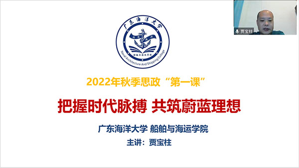贾宝柱以《把握时代脉搏 共筑蔚蓝理想》为主题,从学院人才培养目标、海洋与大国崛起的关系、大国崛起的启示、如何建设海洋强国等方面来展开阐释。他强调,“海兴则国强民富,海衰则国弱民穷”,建设海洋强国是中国特色社会主义事业的重要组成部分,也是“中国梦”的基础保障,作为当代大学生,要始终牢记使命,坚定理想信念,扎实学识本领,为建设海洋强国贡献青春力量。