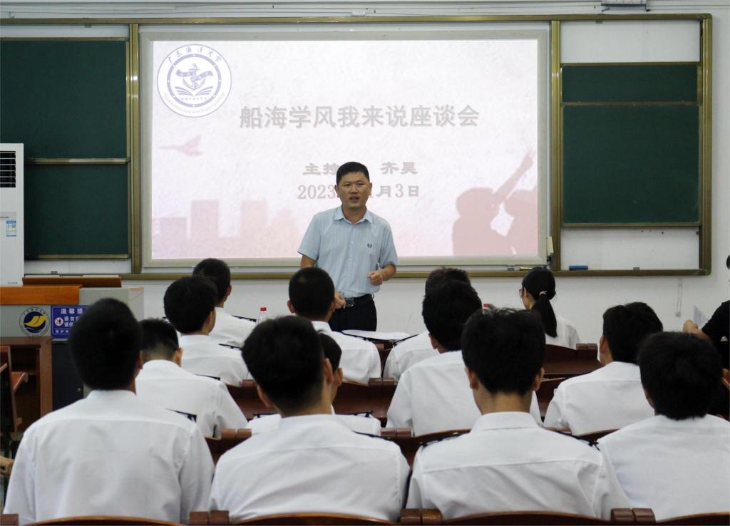 举办“船海学风我来说”主题座谈会。本次座谈会由学院党委副书记齐昊主持,半军管办公室副大队长江涛、辅导员黄荔、陈方园以及30余名学生代表参加会议。