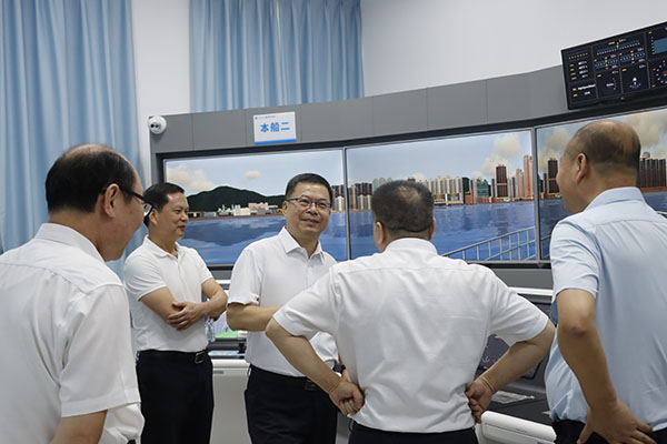 会后各位领导为“航海科技与文化科普教育基地”进行了揭牌,并参观了科普教育基地的船舶操纵模拟器、轮机模拟器、船舶模型室等。
