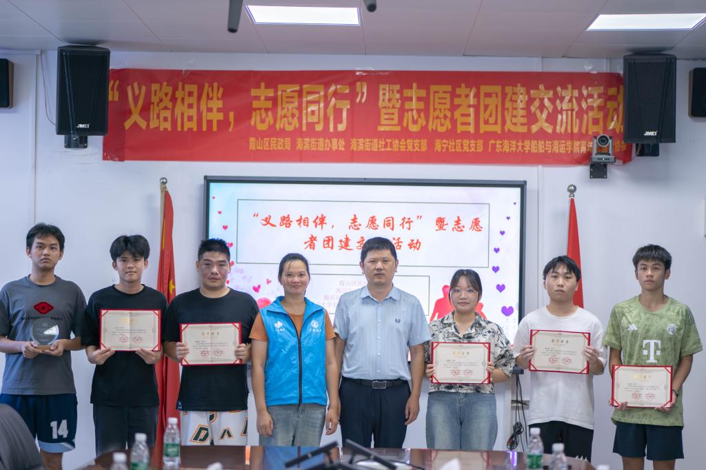 联合海滨街道举办“义路相伴,志愿同行”暨志愿者团建交流活动。学院正处级辅导员、党委副书记齐昊,团委书记郑祯远,湛江市民政局社会工作督导陈亚红,海滨街道社工站副站长冯丹露及志愿者代表等40余人参加本次活动,活动由郑祯远主持。