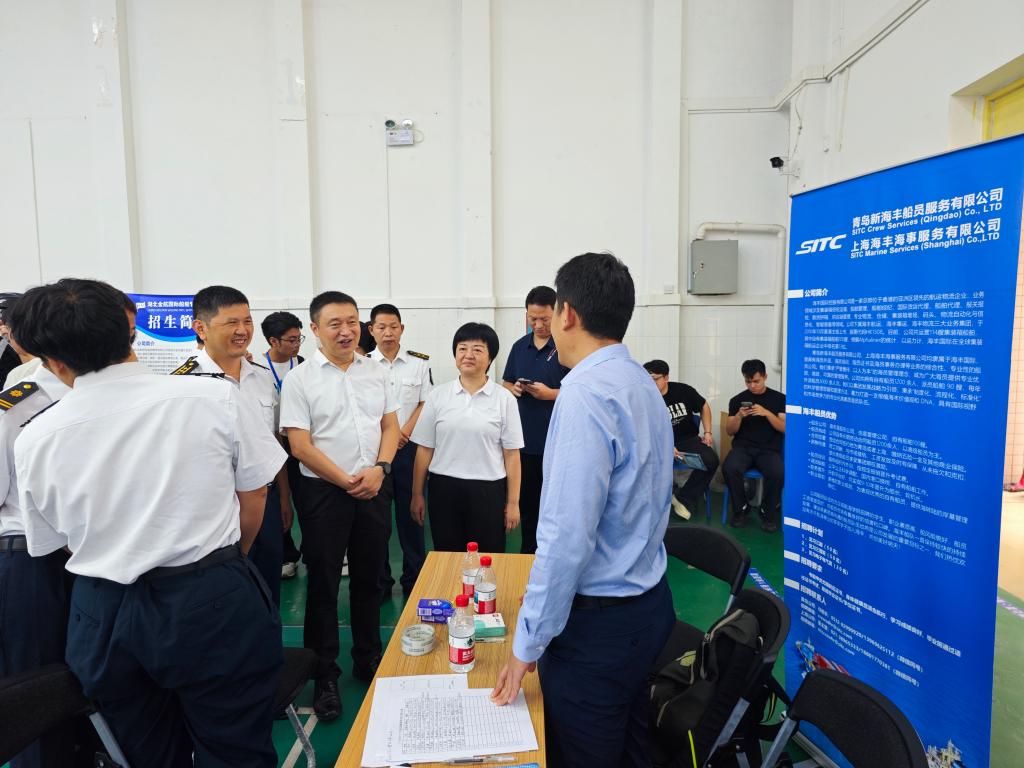双选会中,鲁义善等深入各企业展位,与用人单位亲切交流,详细了解国内国际航运人才的需求趋势和招聘信息等,对用人单位支持我校毕业生就业工作表示感谢。鲁义善还与学院毕业生进行了面对面交流,鼓励同学们树立正确的就业观,积极展示自身才华,争取找到理想的工作。