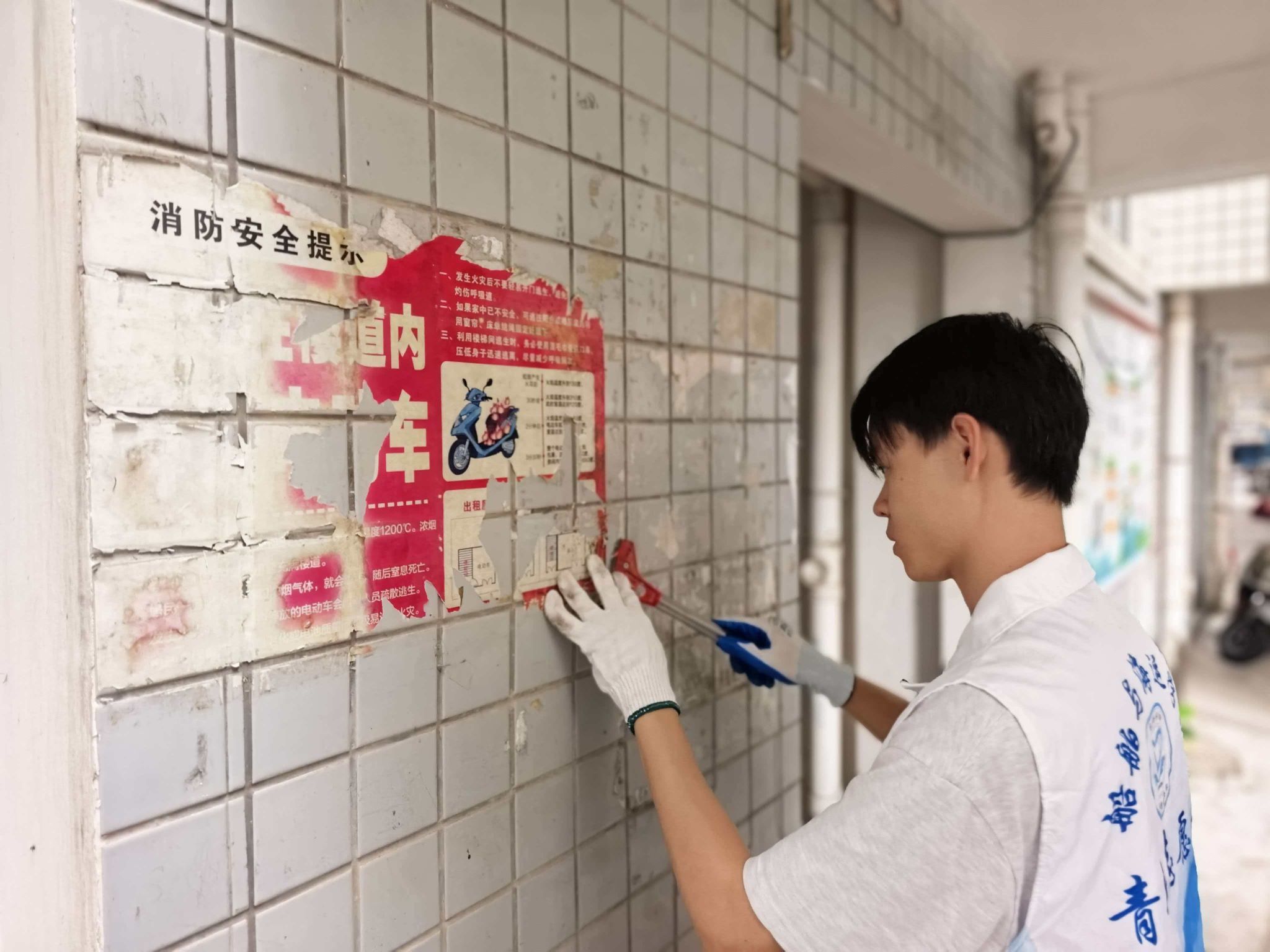 活动中,学院师生聚焦明哲社区公共区域环境整治,在社区工作人员的统一安排下,分成多个小组,深入三帆海景新邨等小区,开展环境卫生清洁工作,认真清理楼道、消防设施上的垃圾和“牛皮癣”,用实际行动为社区居民营造整洁温馨的公共环境,获得社区工作人员和居民的广泛好评,充分展现了学院青年大学生的责任担当与奉献精神。