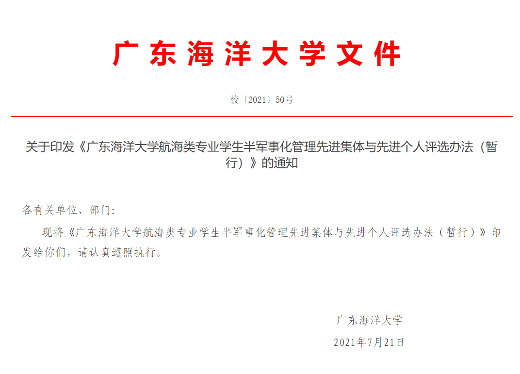 广东海洋大学校长办公室 2021年7月21日 印发
