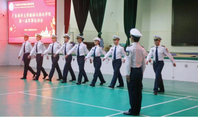 在海滨校区小礼堂举办了学院首届“军事运动会”。本次比赛由学院半军事化管理副大队长江涛主持,副大队长刘抒睿和辅导员郑祯远担任现场评委,由退役学生符传宝,半军管学生骨干周青、胡凯松、郑安南等担任运动会的裁判。航海类专业学生自管会、“精准征兵—船海预征中队”以及2022级各区队等300余人参加本次活动。