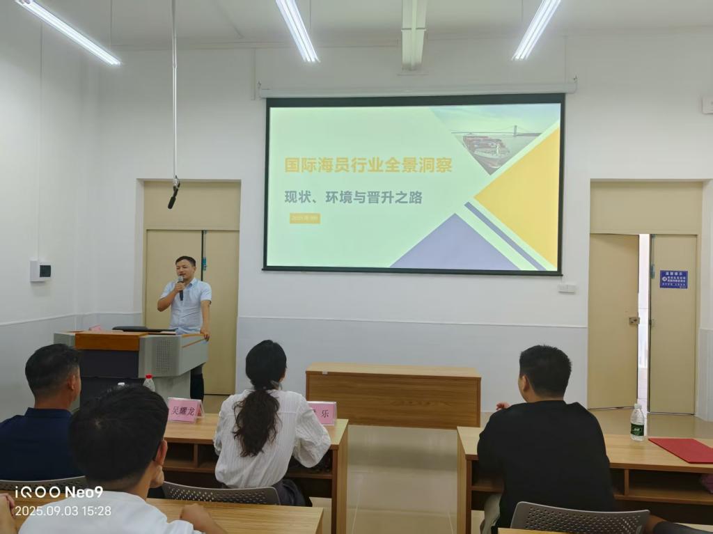 在海滨校区举办“船海有我——我与校友面对面”暨团建联建活动。中远海深圳分公司证培部经理吴耀龙,团委书记梁乐,政委贾亮,业务部高级主管李海兵,校友郑灿锋、王俊锋以及学院党委书记邓朝晖,正处级辅导员、党委副书记齐昊,团委书记郑祯远和100余名学生代表参加本次活动。