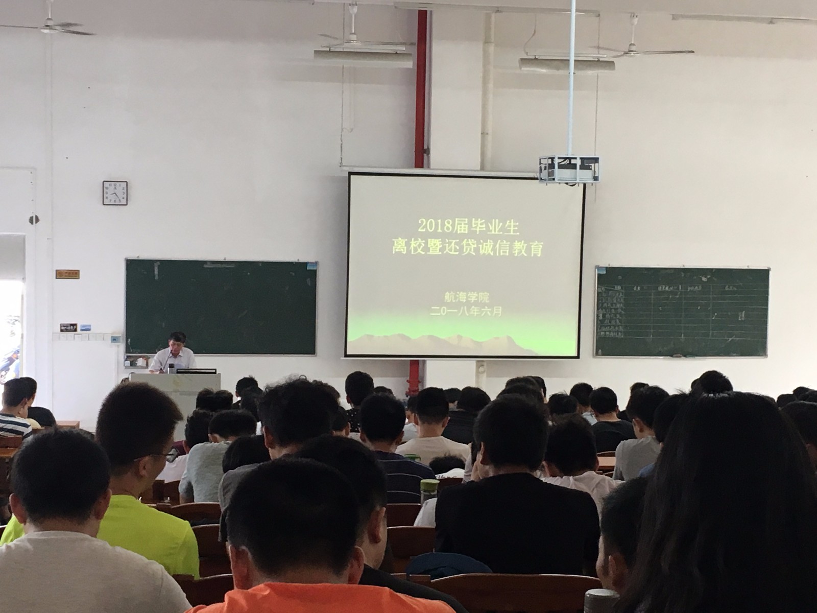 5月30日上午,航海学院在第二教学楼B5203召开了2018届毕业生安全离校及诚信还贷教育会议,会议由学院党委副书记汪周毅主持,孟庆龙老师主讲,廖勇老师和学院返校毕业生参加了会议。