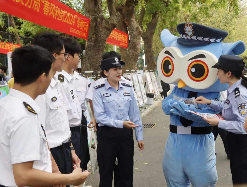 为迎接第九个全民国家安全教育日,全面提升学生的法治观念和安全意识,营造海滨校区良好的法治氛围。4月12日下午,湛江市经开区政法委联合经开区多部门在海滨校区开展“维护校园安全,拒绝不法侵害”主题普法宣传教育活动。湛江经开区政法委专职副书记洪国兴、赵秋林,扫黑办副主任许小燕,学校保卫部副部长徐法军,自慰视频