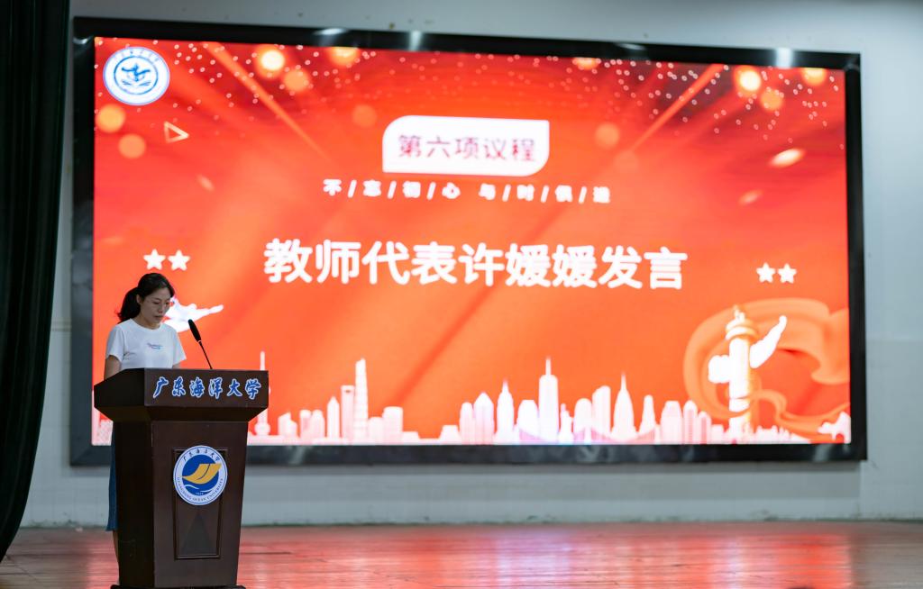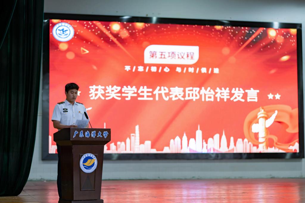 大会在雄壮的国歌声中拉开帷幕,学院学生代表带来诗歌朗诵《南海,我是你岛上的一只水鸟》,抒发爱国主义情怀,展现船海青年昂扬向上的精神面貌。副院长李荣辉教授宣读了表彰决定,号召全院学生以受表彰同学为榜样,勤奋学习,积极进取。