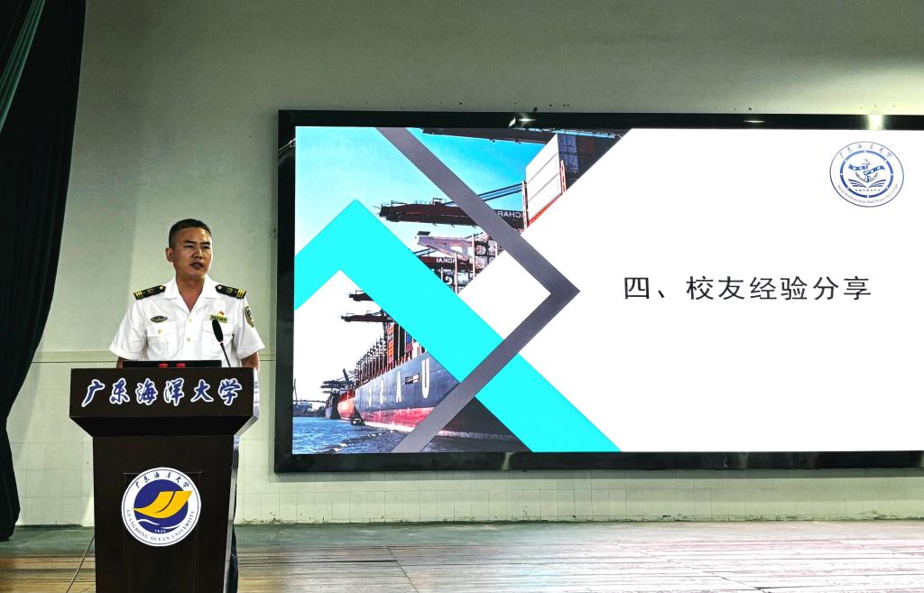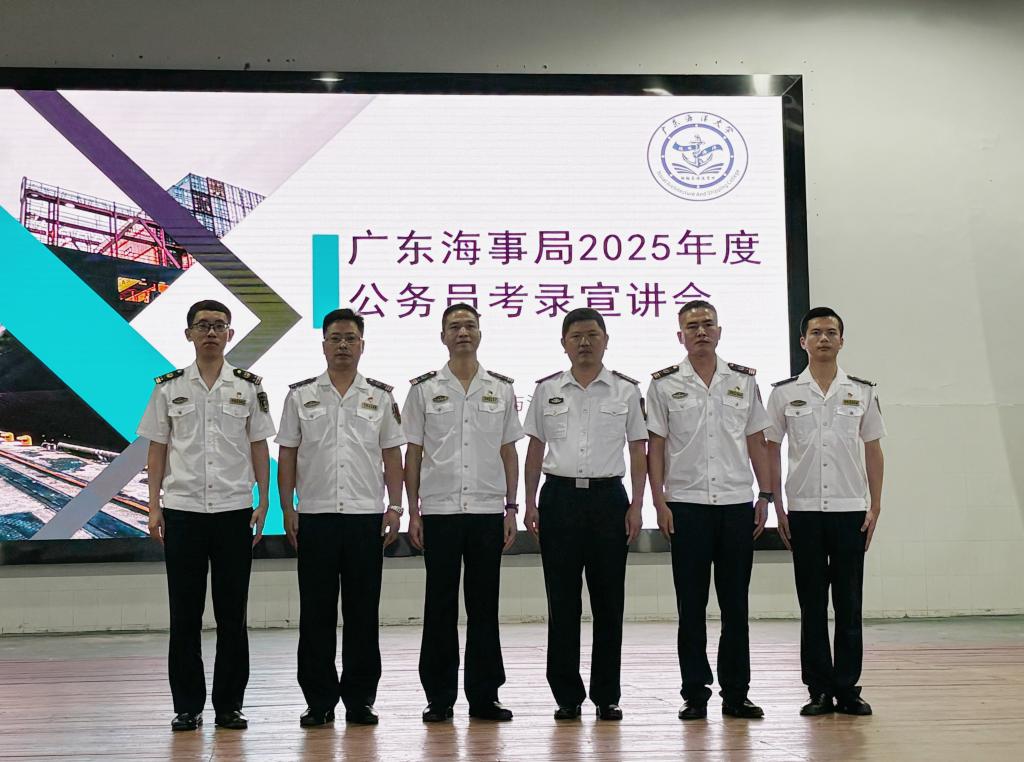 随后,与会人员集中观看了广东海事局宣传片,全方位了解了广东海事局履行水上交通安全监督管理、船舶及相关水上设施检验和登记、防治船舶污染和航海保障等行政管理和执法职责的有关情况。金震霖详细介绍了2025年度公务员招录招聘计划,职位和岗位设置、专业需求、工作职责等情况。在广东海事系统工作的优秀校友孙自伟、刘志国分享了海事工作的宝贵经验和深刻体会。