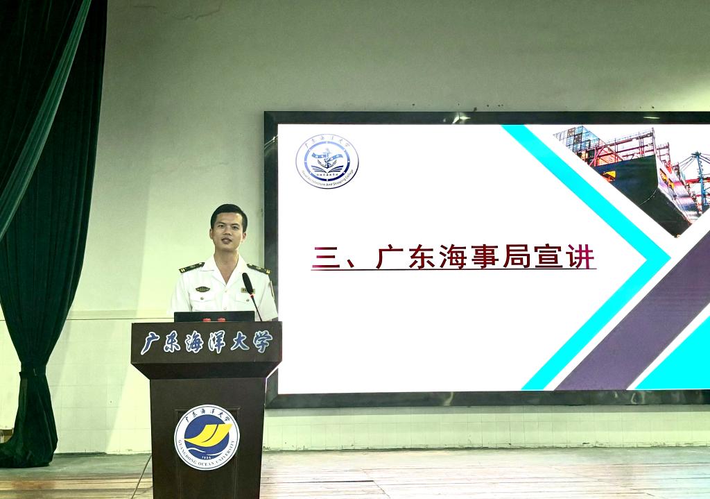 举行。湛江海事局人事教育处处长刘会清、湛江海事局湛江霞海海事处处长孙自伟、湛江海事局纪检办公室主任刘志国、湛江海事局人事教育处副处长潘志文、船海学院正处级辅导员、党委副书记齐昊以及学院300余名师生等参加了宣讲会,宣讲会由湛江海事局湛江东海岛海事处硇洲海巡执法大队副大队长金震霖主持。
