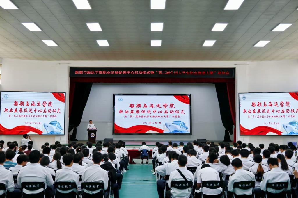 在海滨校区礼堂举办“大学生职业发展促进中心”启动仪式暨“第二届全国大学生职业规划大赛”动员会。学院党委书记邓朝晖,院长贾宝柱,正处级辅导员、党委副书记齐昊,全体学工半军管人员及300余名学生参加了本次活动,活动由齐昊主持。