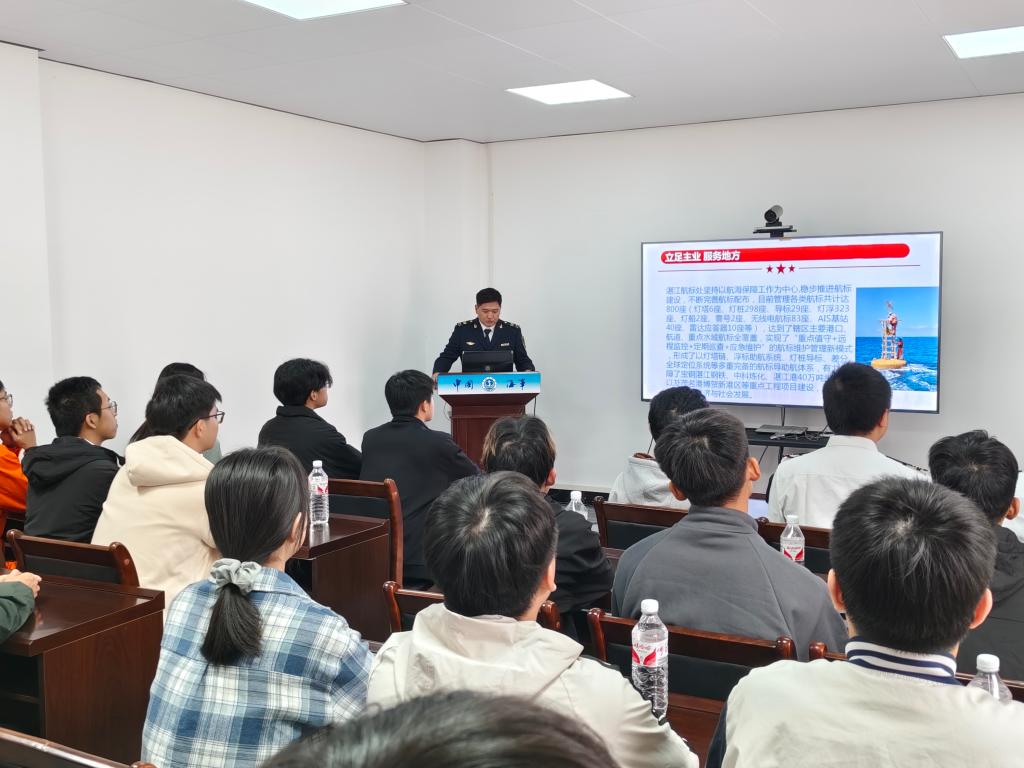 党委书记邓朝晖,正处级辅导员、党委副书记齐昊,半军管副大队长吴捍泽,辅导员郑祯远、陈方园带领学生代表30余人一同前往交通运输部南海航海保障中心湛江航标处开展“船海有我一我与校友面对面”活动。湛江航标处党委书记麦亚富,副处长陈家齐,航标养护中心主任陈宇红,船舶管理中心主任梁勇明以及校友田亮、龙达聪等参加活动。