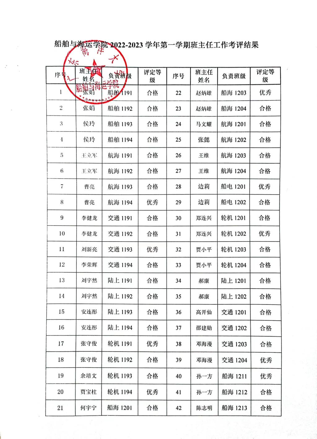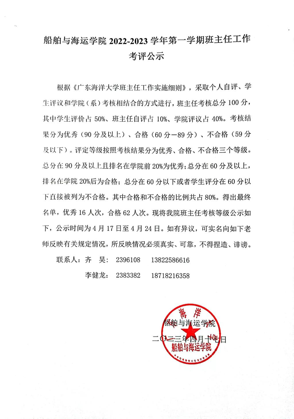 自慰视频 2022-2023学年第一学期班主任工作考评公示