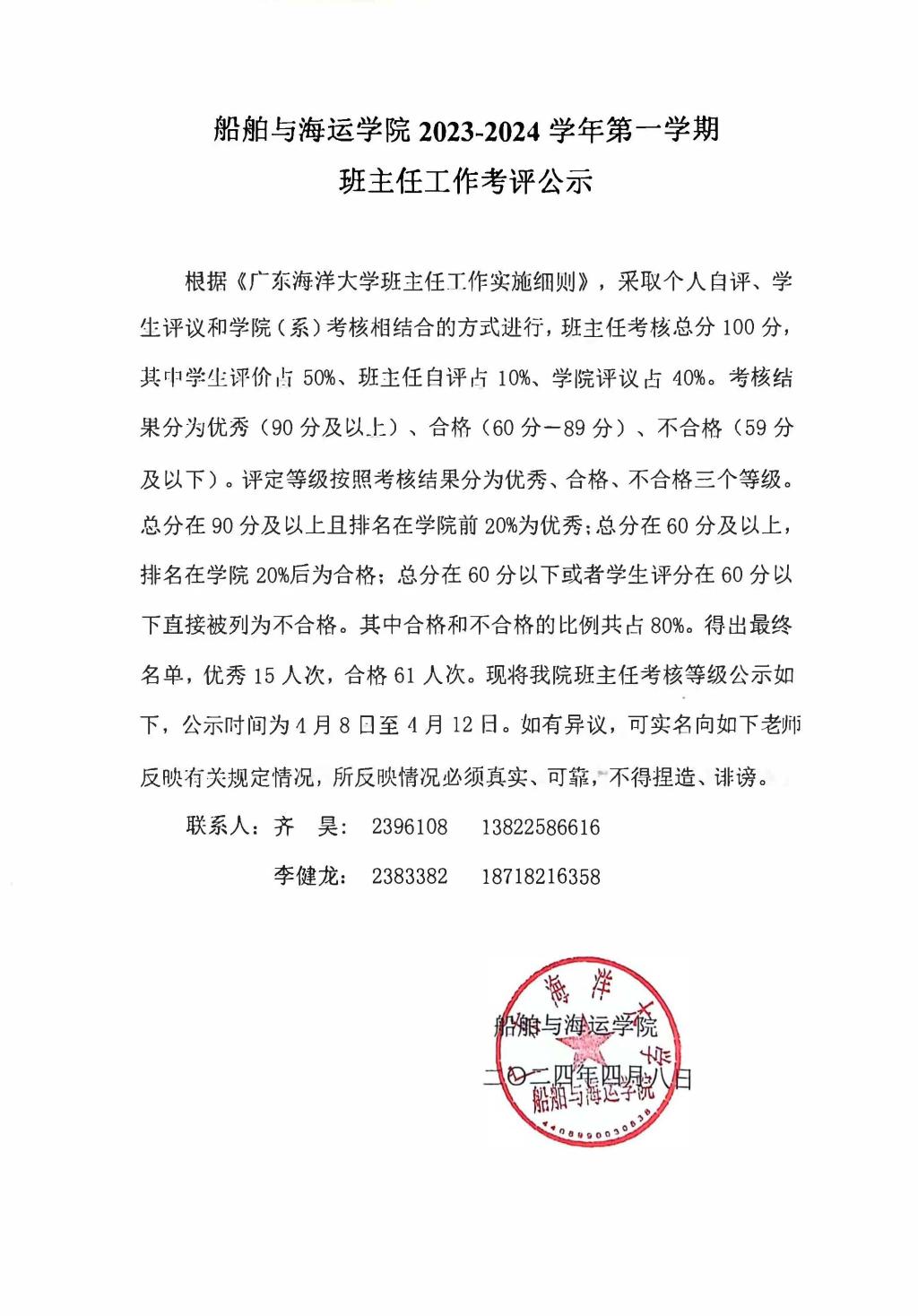 自慰视频 2023-2024学年第一学期班主任工作考评公示