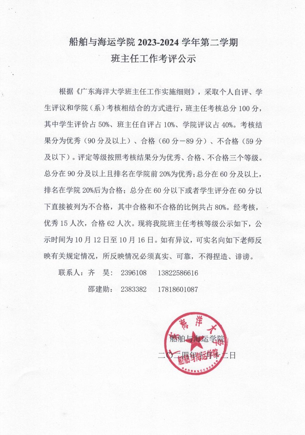 班主任考核等级公示如下,公示时间为10月12日至10月16日。如有异议,可实名向如下老师反映有关规定情况,所反映情况必须真实、可靠,不得捏造、诽谤。