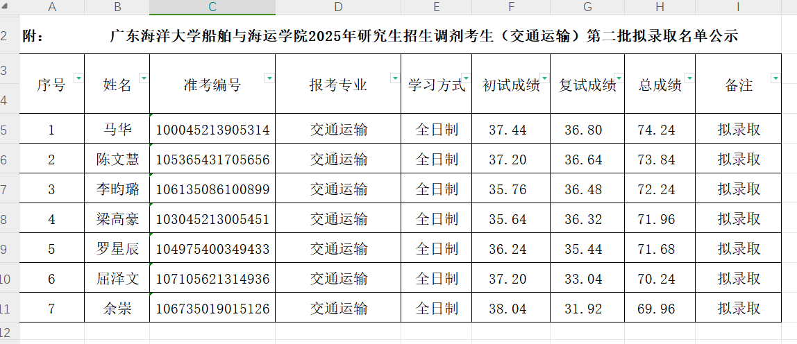 根据学校及自慰视频 研究生招生工作的相关文件精神和要求,经学院研究生招生录取工作领导小组审定,将自慰视频 2025年硕士研究生招生调剂(交通运输)第二批考生复试成绩及拟录取名单公示。如有拟录取考生自动放弃,按总成绩排名依次递进。