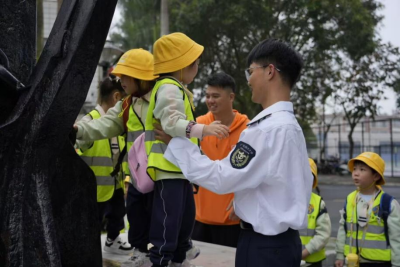 的船锚雕塑前。在这里,志愿者们用生动有趣的语言,为小朋友们科普了船锚的结构与重要作用,并引导他们想象船锚在茫茫大海中稳住船只的神奇场景。小朋友们听得津津有味,纷纷在船锚雕塑前合影留念,记录下这难忘的瞬间。