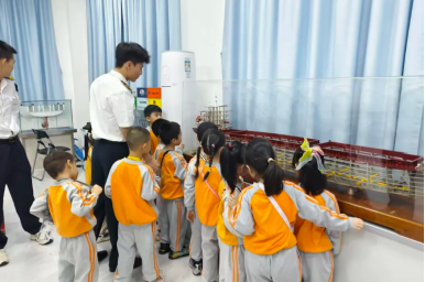 告别船锚,海洋石油981 钻井平台模型如深海灯塔般矗立眼前,引来孩子们阵阵惊呼。“这是我国的‘深海探索尖兵’!” 讲解员自豪地介绍,“它像一座漂浮在海上的钢铁城堡,用长长的钻杆如同探针般,深入海底提取石油天然气,为我们的生活输送源源不断的能量!” 孩子们仰着小脑袋,盯着模型上的支架与设备,仿佛望见了它在深海中作业的身影,好奇的追问接连不断,探索的热情如火焰般升腾。